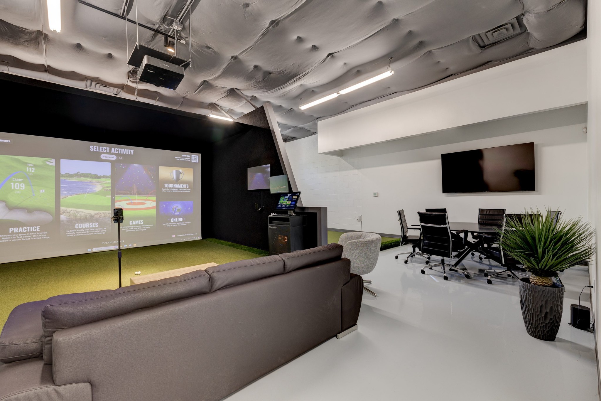 Scratch Inwood was designed for golfers in the Preston Hollow area! This 2-bay facility was designed with space and privacy in mind. Each bay has its own putting green, lounge area, and conference room table.